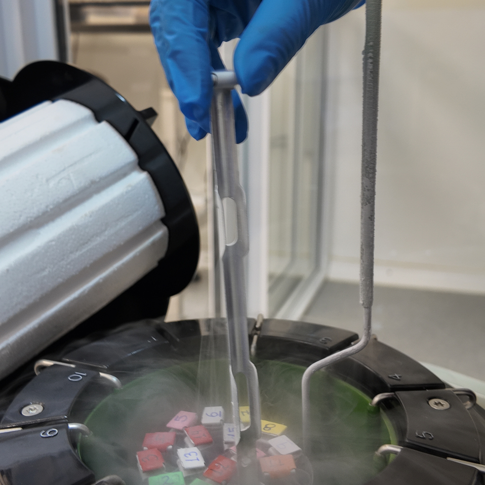 El laboratorio trabaja bajo protocolos estrictos de trazabilidad, control ambiental, identificación y calidad, con equipamiento especializado y monitoreo permanente.